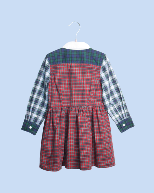 Robe polo plissée à rayures et coeurs rouges 5 ans