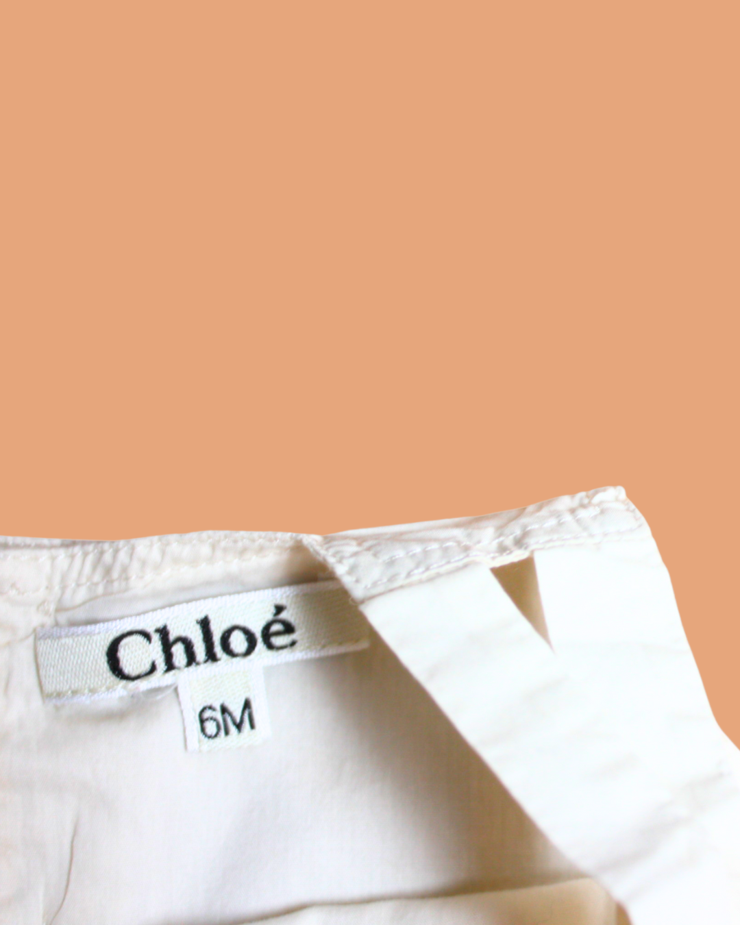 Jolie robe en coton léger de chez Chloé au design simple et élégant. Elle est beige / blanc cassé avec des bretelles doubles et des boutons décoratifs. Elle s'ouvre par des boutons à pression dans le dos.