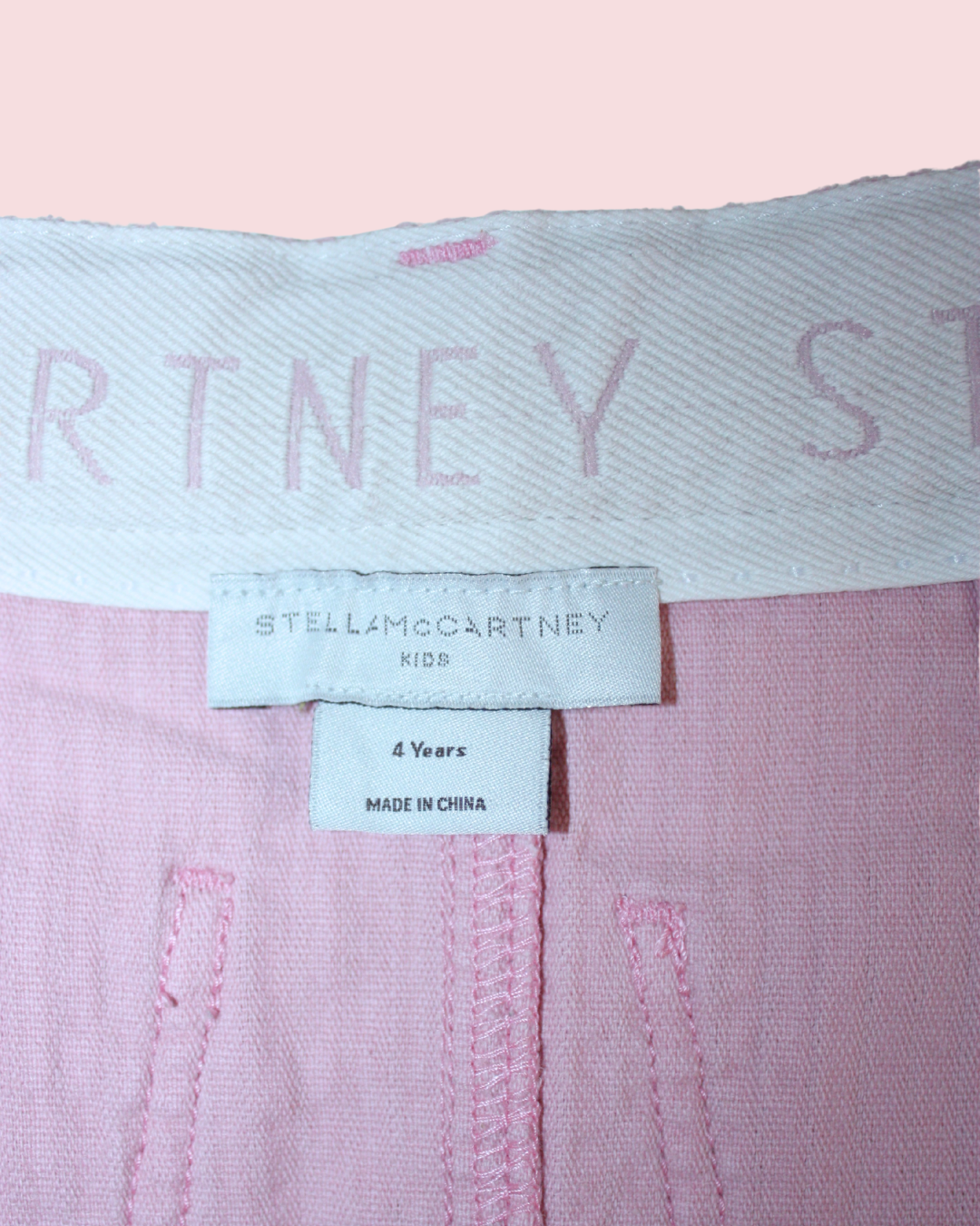 Belle jupe rose Stella McCartney kids en velours côtelé de coton. Elle s'ouvre façon portefeuille et peut se porter toute l'année. Des pattes de réglages avec boutons à l'intérieur permettent d'ajuster la taille et la porter plus longtemps.