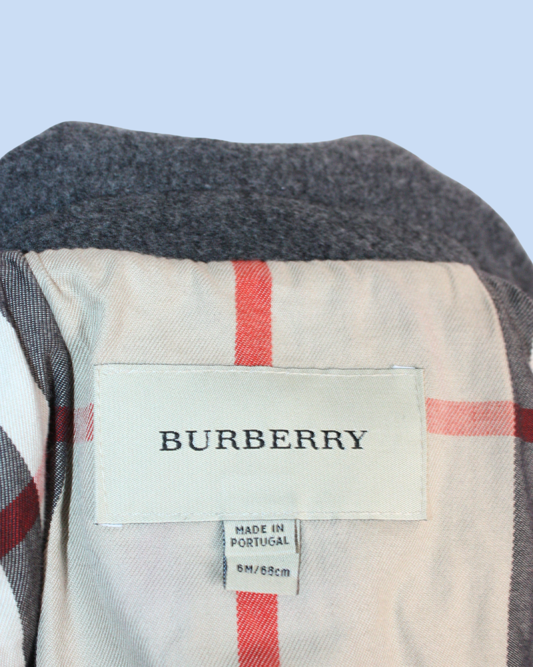 Magnifique manteau gris Burberry en 100 % laine avec doublure à carreaux, iconique de la maison. Un indispensable pour les journées froides d'hiver : alliant chaleur, confort et élégance.