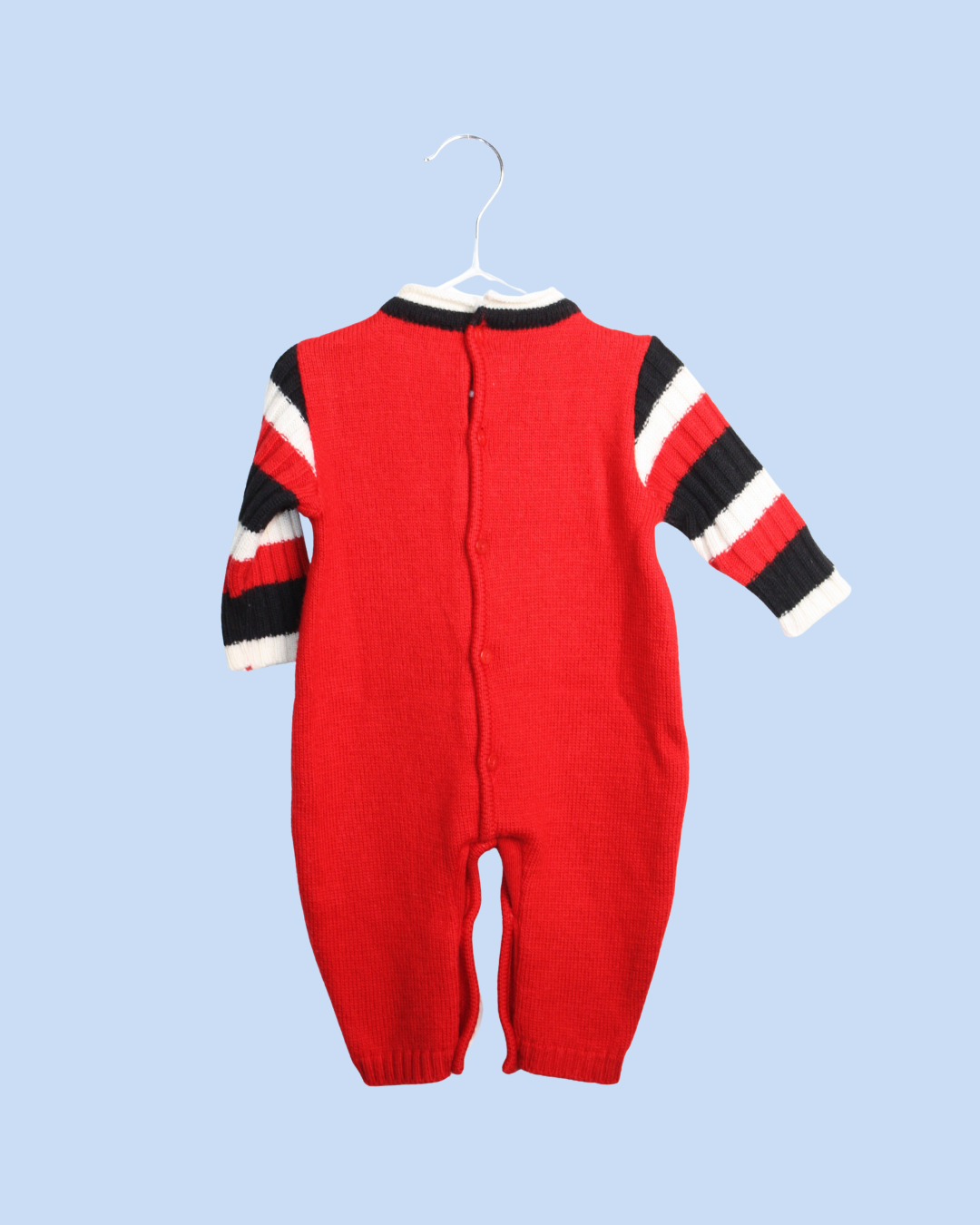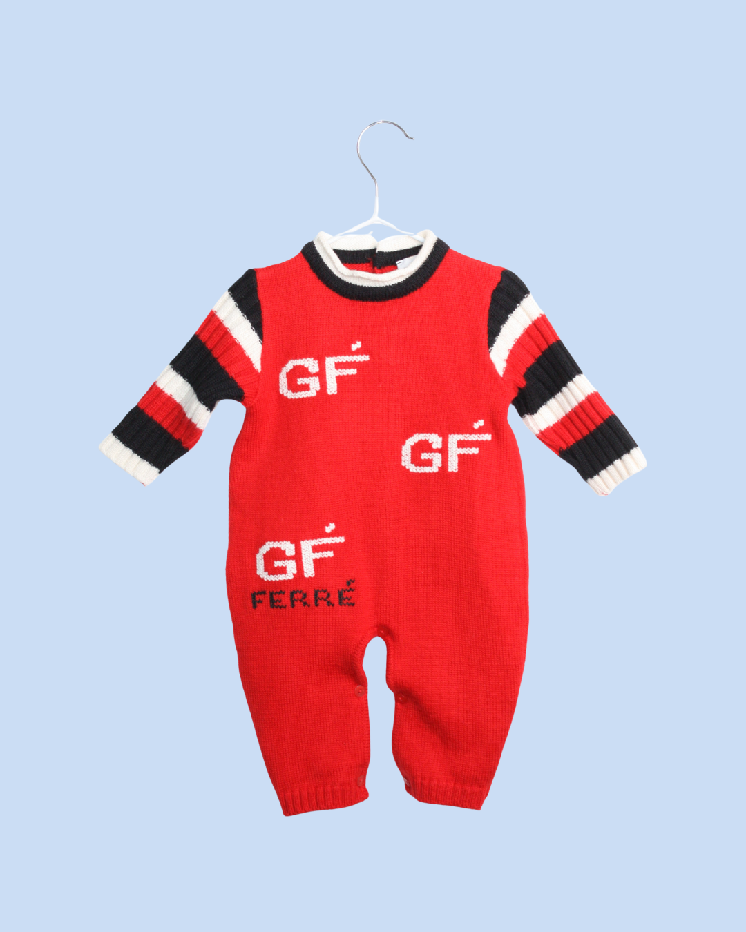 Combinaison en laine douce rouge de chez Gianfranco Ferré. Elle est pile dans le style vintage italien que l'on veut pour cet hiver ! Le créateur milanais avait développé une ligne pour bébé et enfant très chic que l'on retrouve dans les détails de ce beau vêtement entièrement boutonné et signé. Comme souvent pour le vintage, la pièce taille assez grand par rapport à des articles plus récents.