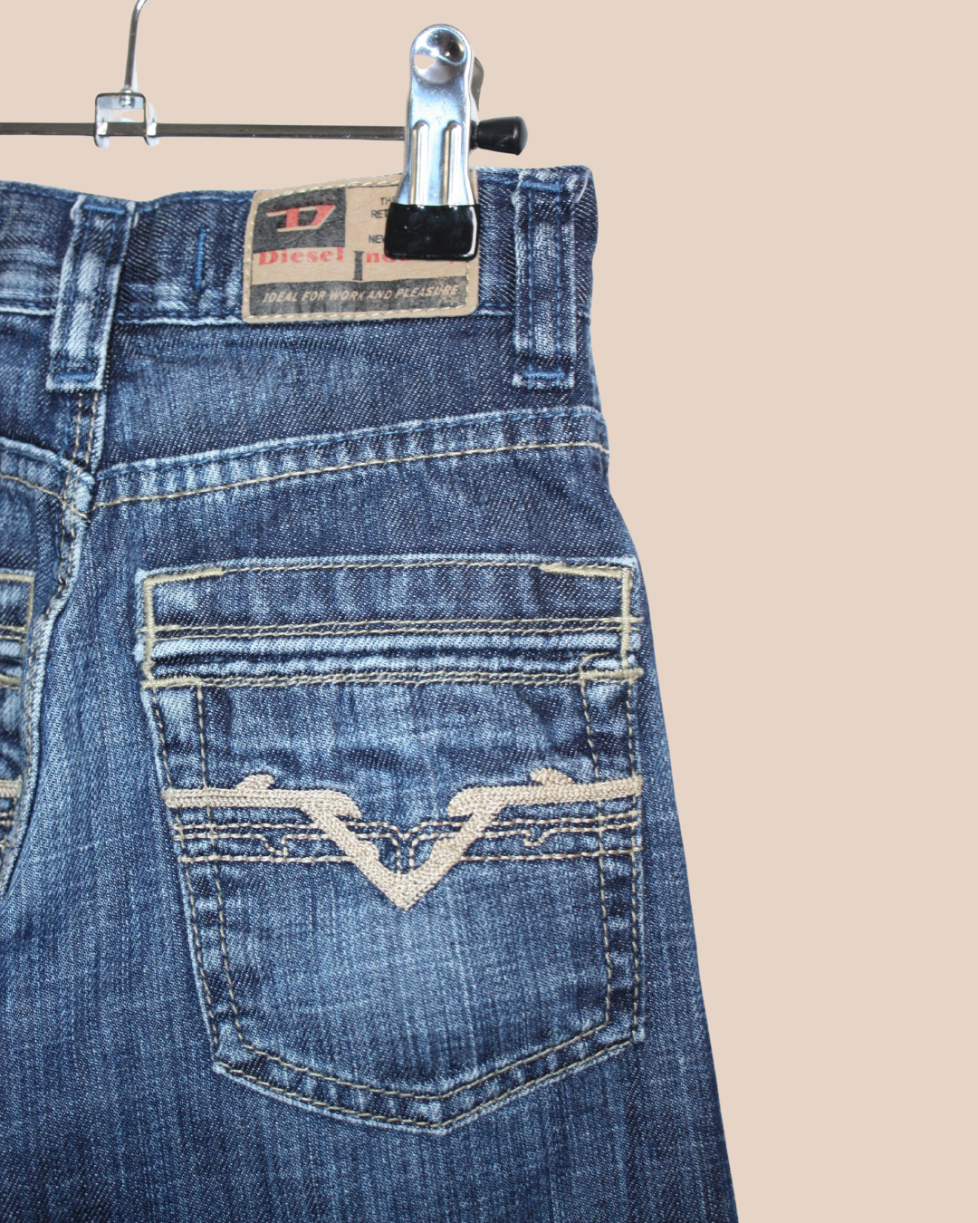 Super jean Diesel avec une coupe et des détails comme les jeux de décoloration rares pour un vêtement pour enfant.