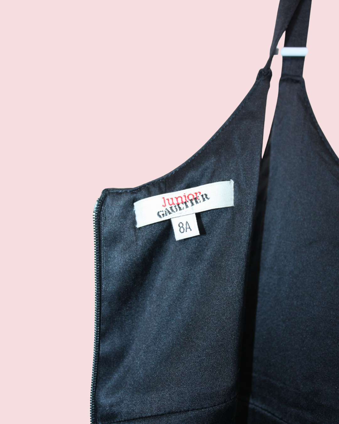Le créateur français - qui s'était déjà inspiré du film Black Swann dans ses créations d'adultes (rappelez-vous de sa robe de mariée noire portée par Mylène Farmer en 2011) - signe ici un petit bijou de mode pour enfant avec cette robe au bustier de satin noir à fines bretelles et sa jupe en tulle façon tutu de ballerine. Une fermeture invisible permet de l'ouvrir dans le dos.