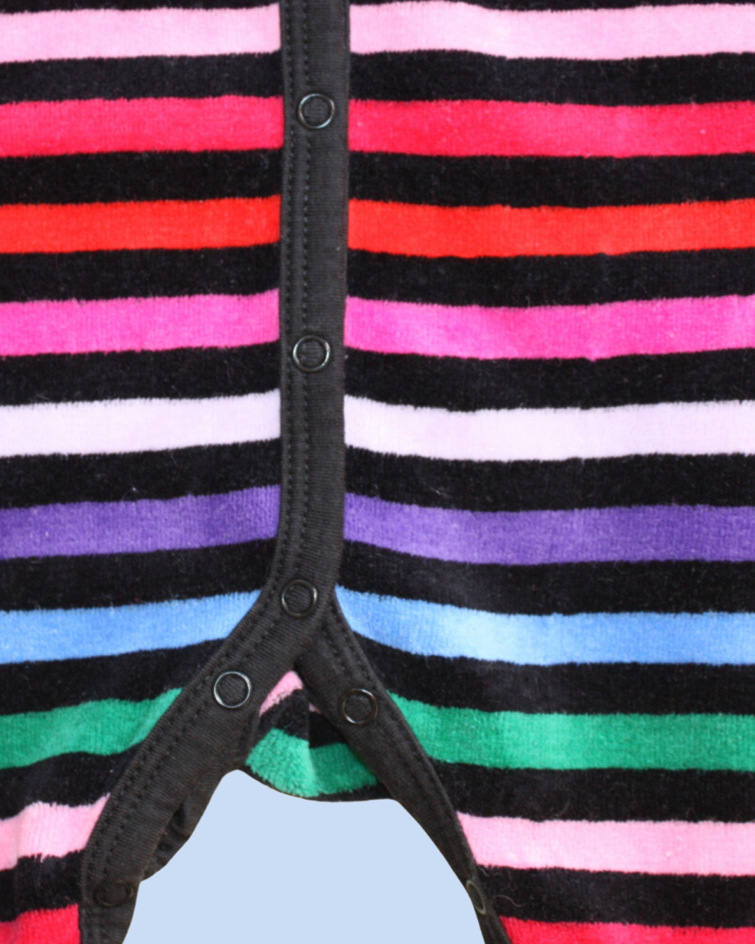 Ce super pyjama mixte tout doux est reconnaissable entre 1000 comme étant une création de Sonia Rykiel avec ses rayures multicolores !