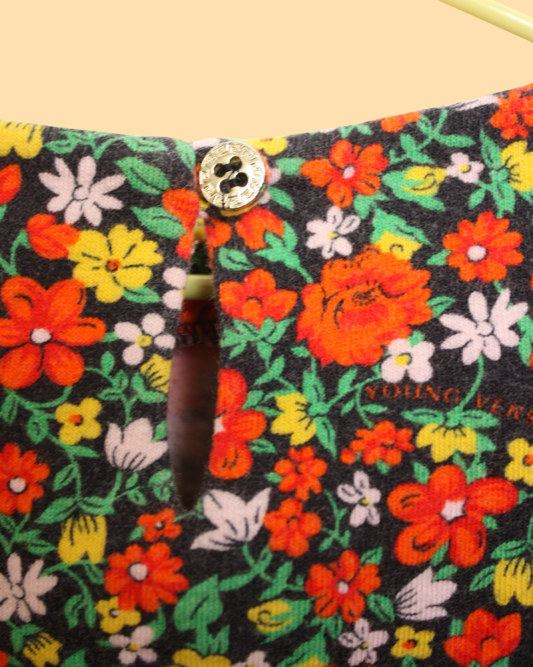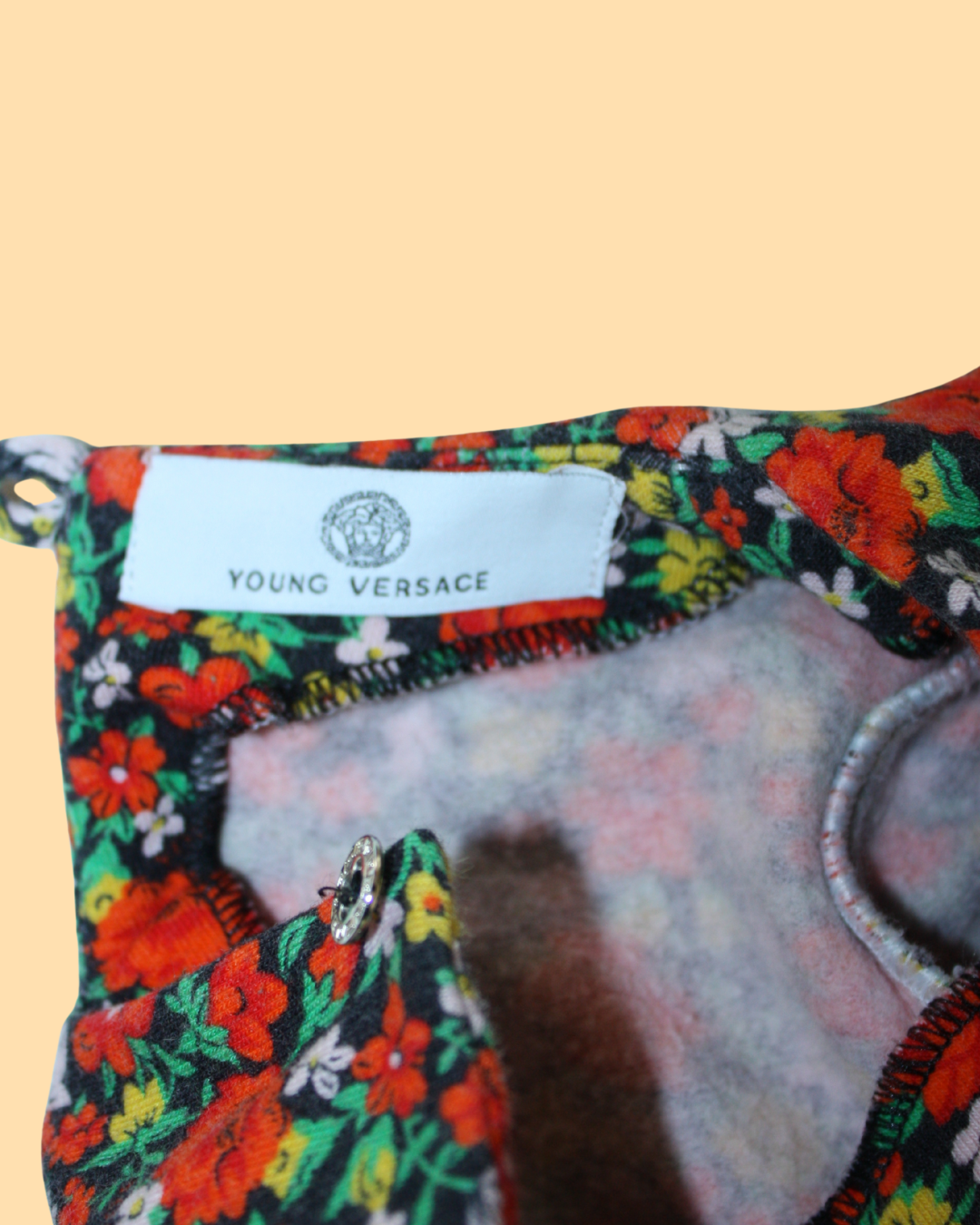 Jolie petite robe Versace en molleton de coton doux imprimé de fleurs. Elle a des manches longues et des petits boutons doré aux manches et au dos avec le motif entourant le logo Medusa.