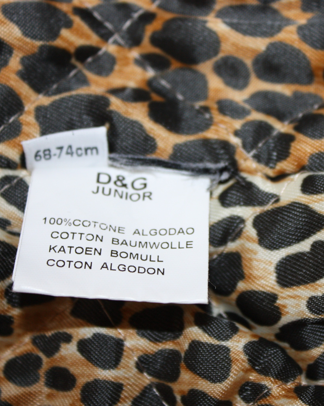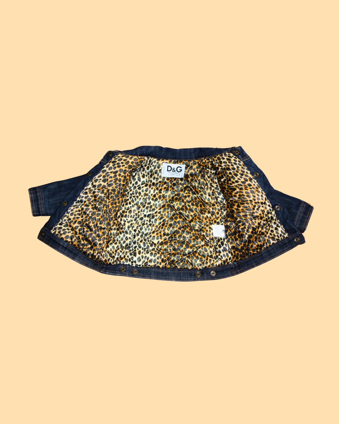 Superbe veste en jean brut Dolce & Gabbana à l'intérieur doublé de léopard matelassé. Elle s'ouvre par des boutons à pression.